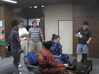 控え室の様子                  中田&林(手三貝の漁師さん)&山本山