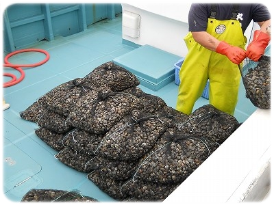 この後、手掘り漁の浅利も水上げされます アンパンマン にっこり2.gif
